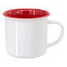 Keramický bílý hrnek s červeným vnitřkem v designu imitujícím populární plecháčky. Kvalitní coating zaručující 3000 mycích cyklů.- Objem: 236 ml- Průměr: 81 mm- Výška: 79 mm- Plocha k potisku: 60 x 200 mmOdstranění nálepky ze spodní strany hrnkuParametry pro potisk:Aplikační teplota: 165oCČas: 60 vteřin ( výtisky z tiskáren Sawgrass a Ricoh )