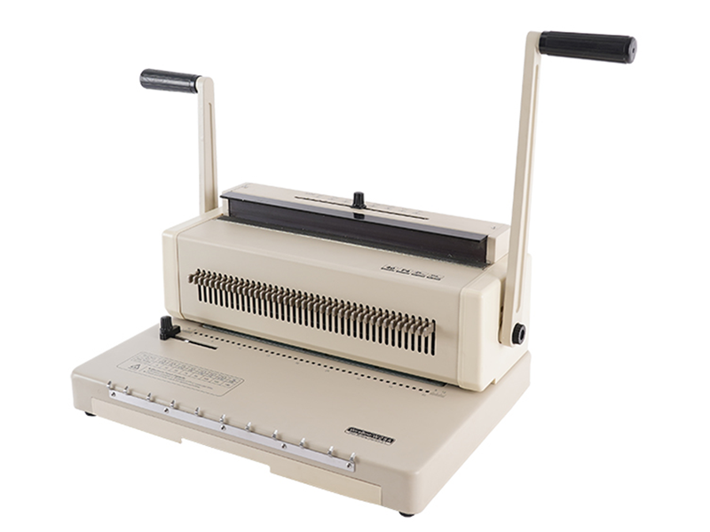 Kvalitní vázací a děrovací stroj, určený pro vazbu dokumentů do kovových hřbetů s roztečí ok 2:1. Je vybaven samostatnou pákou pro děrování a samostatnou pákou pro uzavření kroužku. Vhodný pro vazbu svazků do cca 140 listů. Kapacita děrování na jeden cyklus je do 25 listů papíru. Děruje až 27 otvorů o velikosti 5,5 × 5,5 mm. Nastavitelná vzdálenost děr od okraje listu, vyřaditelné všechny děrovací nože a vyjímatelná nádoba na odpad z děrování umožňují snadnou údržbu a komfortní práci. Otevřené bočnice stroje umožňují vazbu větších formátů papíru. Hlavní vlastnosti Určen pro vazbu do kovových hřbetů s roztečí 2:1 Samostatná páka pro děrování a samostatná pro uzavření kroužku Vhodný pro vazbu svazků do cca 140 listů Děrovací kapacita na cyklus: do 25 listů papíru Děruje až 27 otvorů o velikosti 5,5 × 5,5 mm Nastavitelná vzdálenost děr od okraje listu Vyřaditelné všechny děrovací nože Vyjímatelná nádoba na odpad pro snadné čištění Otevřené bočnice umožňují vazbu větších formátů papíru Technické specifikace Kapacita děrování: 25 listů Kapacita vázání: do 140 listů Pracovní šíře: 300 mm Vyřazení výsekového segmentu: libovolného Měřítko: pro určení velikosti drátu Kovový boční doraz: pro optimální vystředění Rozměry: 465 × 330 × 220 mm Hmotnost: 17 kg