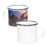 Smaltovaný hrnek s modrým okrajem, sloužícím k ochraně vašich úst před zraněním o hranu smaltové vrstvy.Kvalita: AAAPrůměr: 79 mmObjem: 360 mlVýška: 81 mmPlocha k potisku: 65 x 200 mm Nastavení pro potisk: Teplota: 180oCČas: 70 vteřinOdstranění nálepky ze spodní strany hrnku