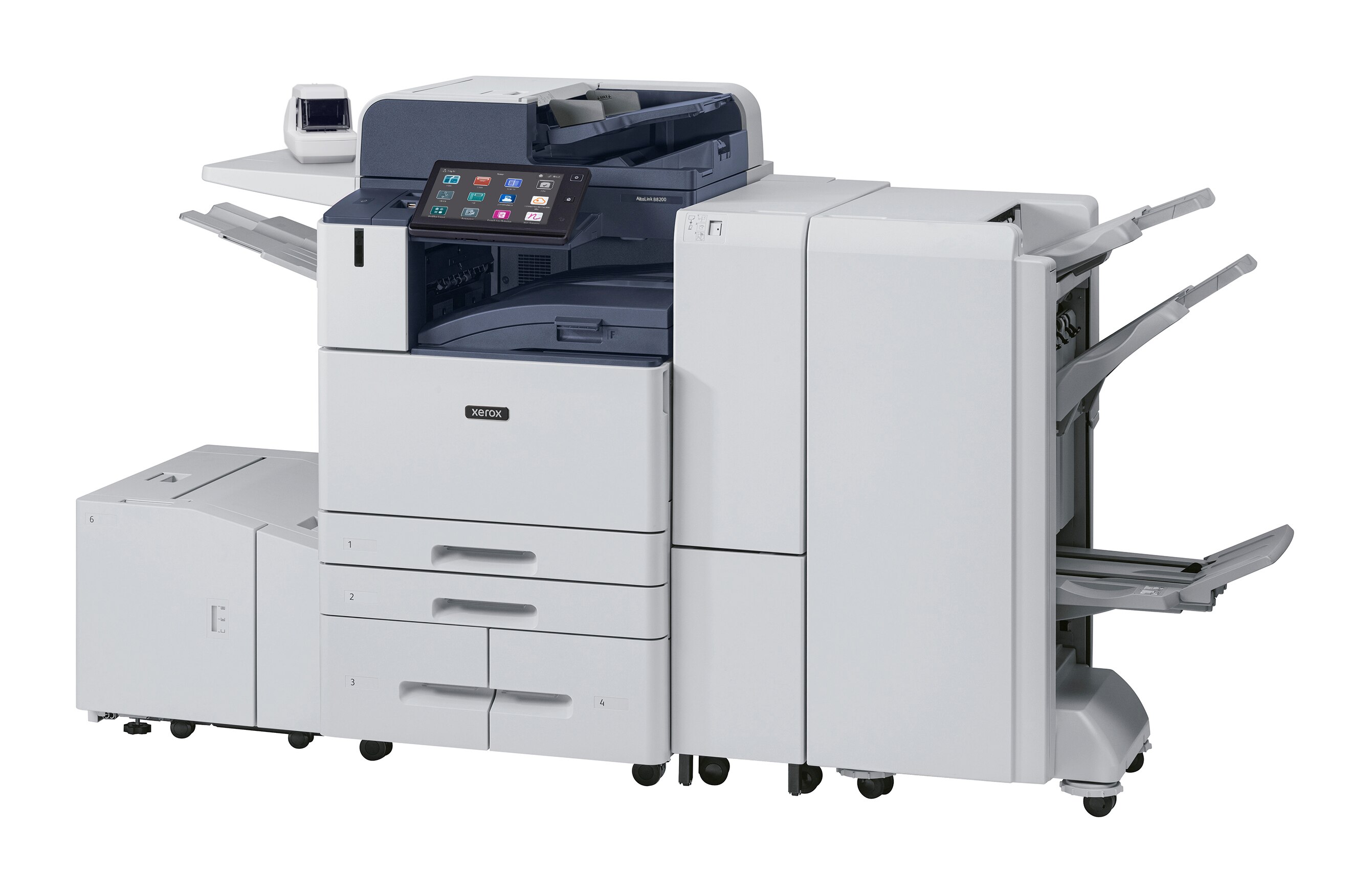 | Funkce kopírování | Anotace, Ověření pro služby, Automatický výběr papíru, Automatické zvětšení/zmenšení, Automatické přepínání zásobníků, Automatický tisk dvoustranných/ oboustranných brožur, dávkové číslování, Sestavená úloha, Srovnání, Obálky, Oddělovače, Smazání hran, Nápověda k funkcím, Kopírování ID karet, Úprava kvality snímků, Posun obrazu, Bezpečné zobrazování, Převrácený obraz, Přerušení velkých úloh, Funkce multi-up, Vzorová sada, Uložení nastavení úlohy, Jedna barva, Sešívání, Akcelerátory Touchless Workflow Accelerators, Průhledné materiály |